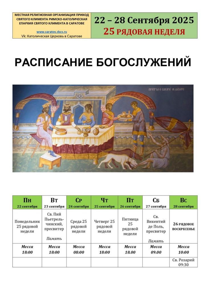 С 3 по 12 сентября о. Диогенес вместе с двадцатью прихожанами из Епархии Святого Климента совершили паломничество в Рим, чтобы участвовать в событиях Юбилейного Года. Особенно запомнилась канонизация Карло Акутиса и Пьера Джорджо Фрассати — это был момент глубокого духовного вдохновения и радости для всех.