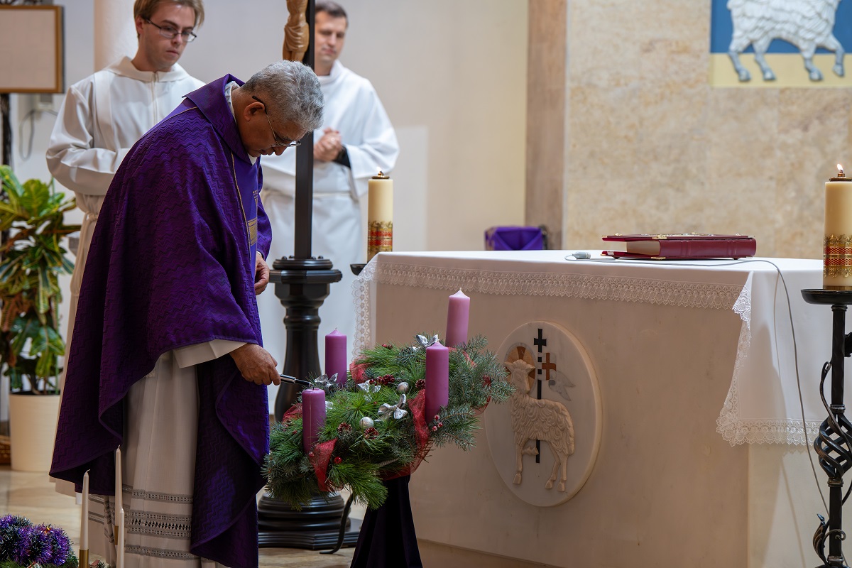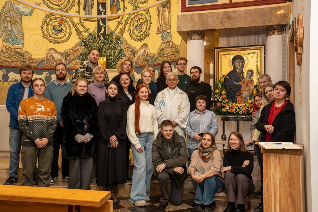 В воскресенье, в первый день нового литургического года после Святой Мессы всем приходом спели Лоретанскую Литанию Пресвятой Деве Марии. А затем о. Денис-Мария возложил малые скапулярии Матери Божией с горы Кармель на подготовленных к этому посвящению кандидатов.
